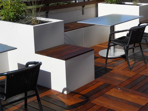 Bison Ipe Wood Deck Cubes are made of natural Ipe hardwood and lined with a waterproof polyurethane coating. They Integrate seamlessly with Bison Deck Systems.