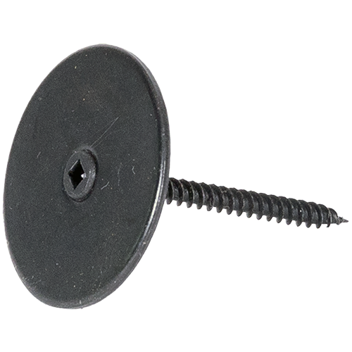 The LOBOTM Wood Tile Fastening Clip securely attaches wood tiles to adjustable pedestals using a single box-head screw and a precision-fit black steel washer. The washer seats into the kerf of each wood tile, locking tiles firmly in place once the screw penetrates the pedestal head. Engineered for simplicity and durability, this system provides a clean, secure tile installation on elevated deck surfaces.