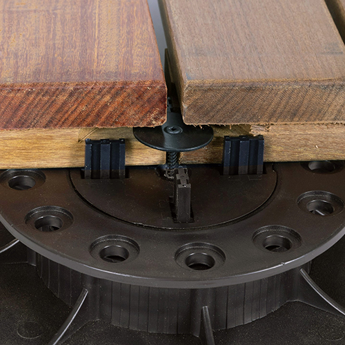 LOBOTM pedestals provide the foundation for a raised deck system. They offer adjustable support and precise leveling for 2CM porcelain pavers, wood tiles, and other decking materials.